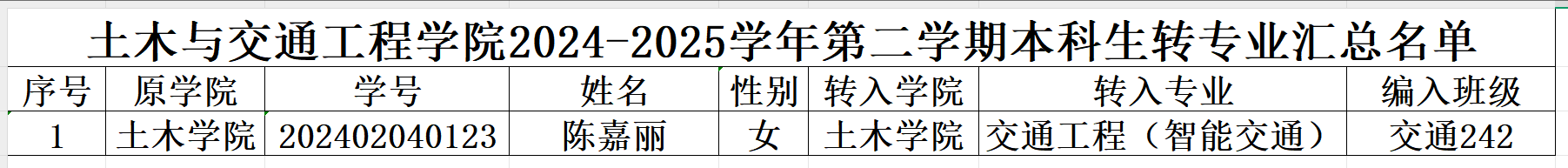 根据2024-2025学年第二学期关于本科生转专业工作的通知,和《北京建筑大学本科学生转专业实施办法》文件精神我院组织开展了本科生转专业工作。经学生申请,学生所在斗地主电脑版 审核,我院转专业考核小组考核,土木斗地主电脑版 第志愿录取接收1名转专业学生,公示如下: