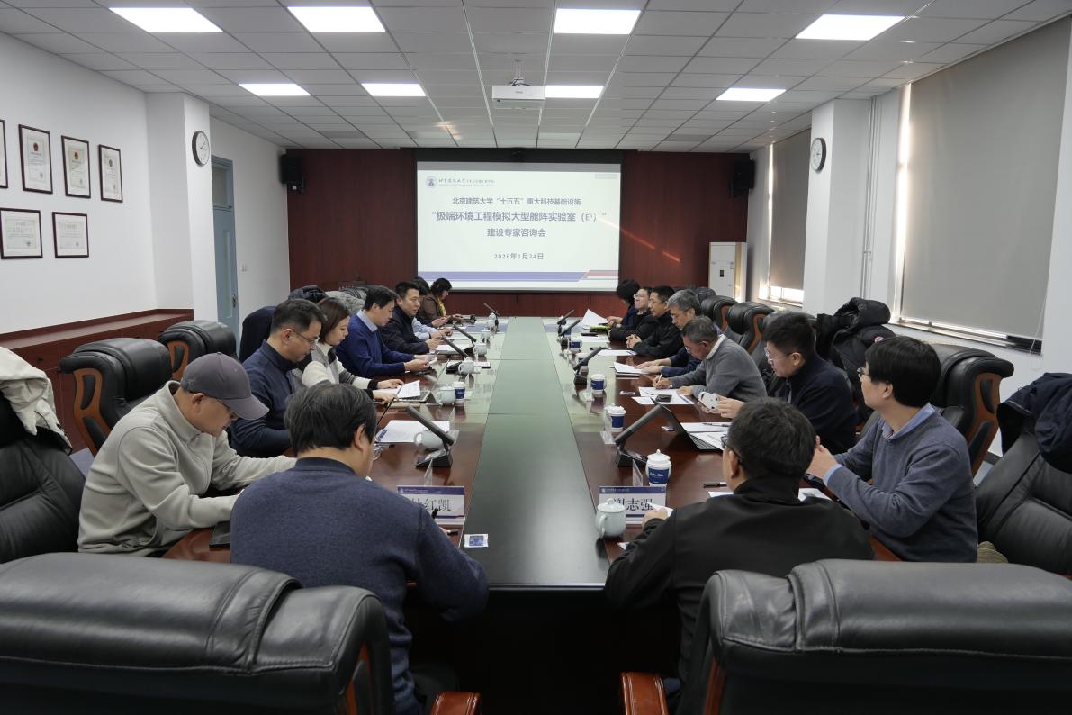 1月24日下午,北京建筑大学“十五五”重大科技基础设施“极端环境工程模拟大型舱阵实验室(E立方)(Large-scale Chamber Array for Extreme Environment Engineering Simulation, E3 Array)”(以下简称实验室)建设专家咨询会在土木馆顺利召开。本次会议旨在精准把脉实验室建设构想,以高起点规划与高质量建设,打造面向未来的学校科研创新高地。学校党委常委、副校长伊廷华教授出席会议并致辞。科发院、国资处和土木斗地主电脑版 等相关老师参加会议,会议由重大平台建设管理处处长王万鹏主持。
