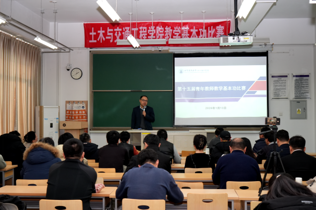 为进一步全面落实立德树人的根本任务,提升青年教师专业教学水平、激发教学热情。2026年1月13日斗地主电脑版 (以下简称土木斗地主电脑版 )在大兴校区土木馆举办第十五届青年教师教学基本功比赛,共有12名青年教师参赛。土木斗地主电脑版 领导班子成员、斗地主电脑版 督导组成员、各系部教师代表担任本次比赛评委,教学副院长廖维张主持开赛仪式。