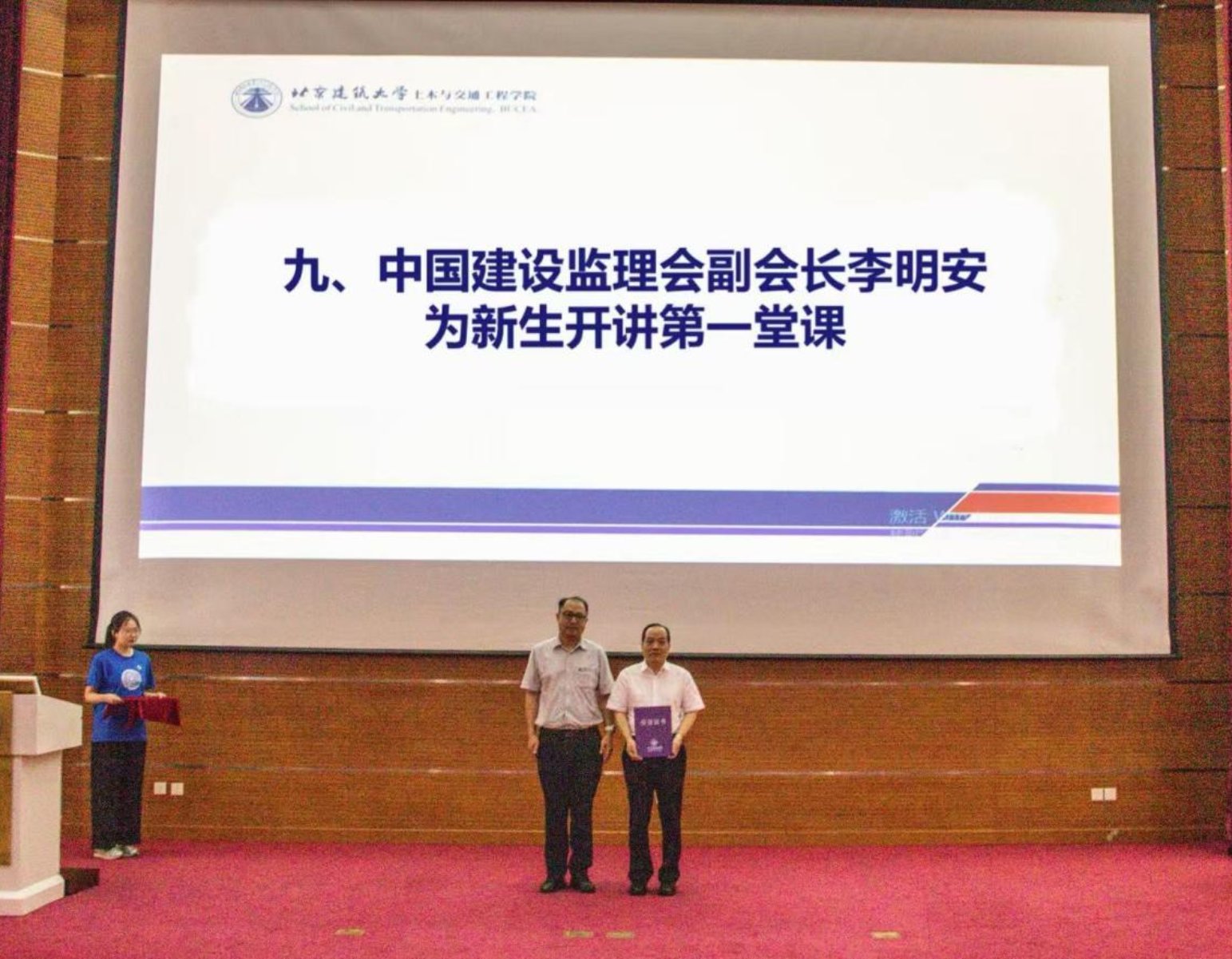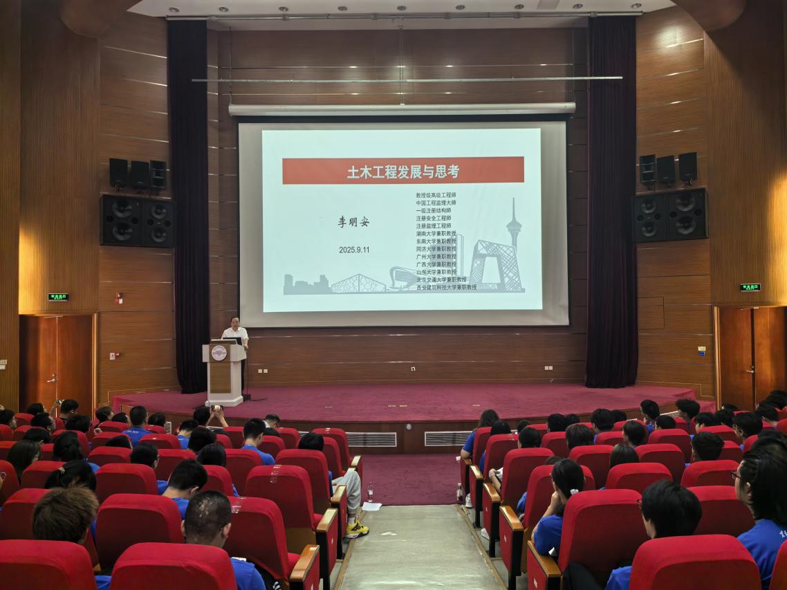 为助力2025级本科新生构建专业认知、明晰行业发展方向,9月11日下午,北京建筑大学党委常委、副校长伊廷华特邀中国建设监理协会副会长兼秘书长李明安教授,在基A报告厅为新生带来以《土木工程发展与思考》为题的开学第一课。会议由土木与交通工程党委书记车晶波主持。