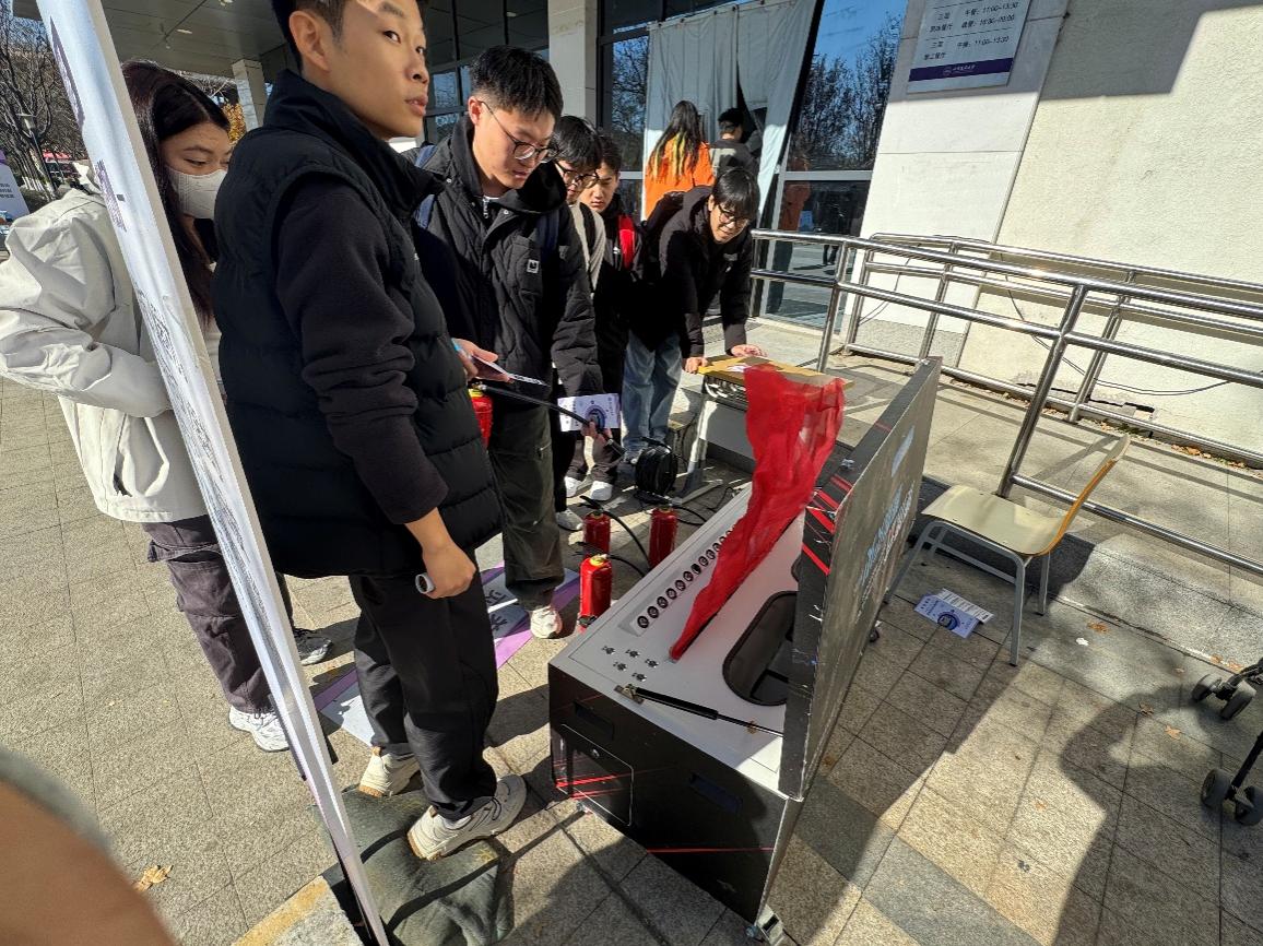 在实验室安全文化节的志愿工作中,我主要负责体验项目的组织与通关引导。看着同学们从辨认分类标识时的迟疑,到精准区分危险与普通物料;从初次操作灭火器的紧张,到熟练完成 “拔栓 — 对准 — 按压” 的规范流程,我深刻体会到:安全文化的传递从不是单向宣讲,而是在互动中,将风险辨识与应急技能的种子,悄悄种进每个人心里。以微薄志愿之力,筑牢校园安全防线,这便是我这个秋日最珍贵的收获。